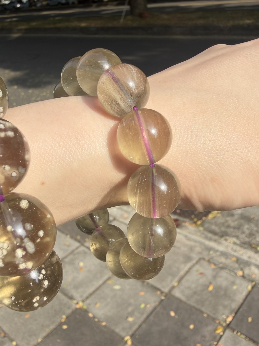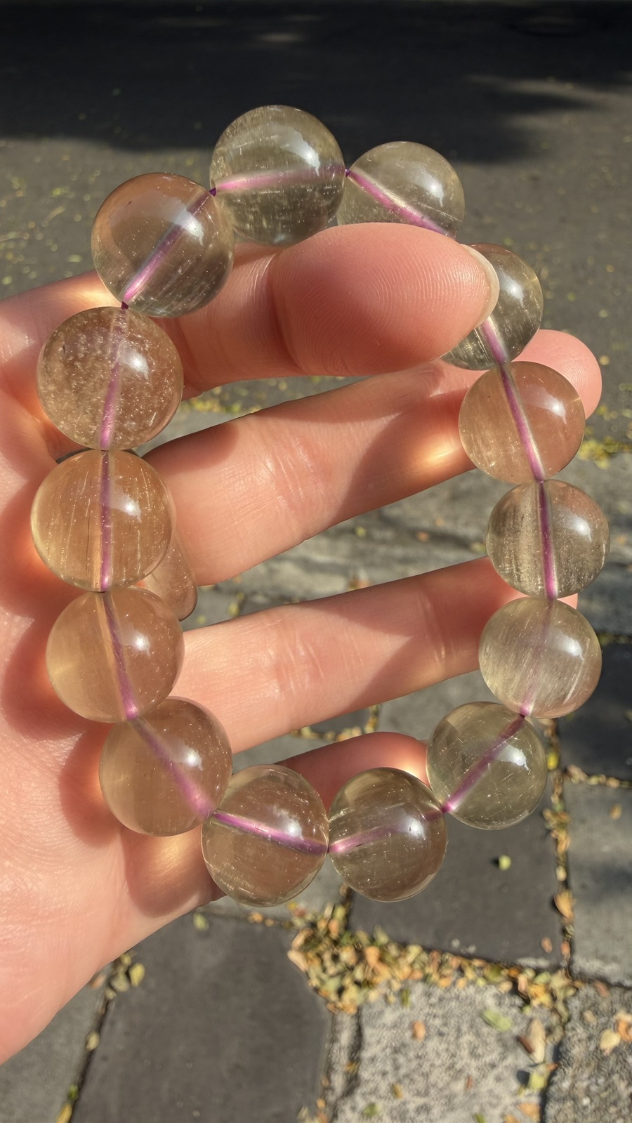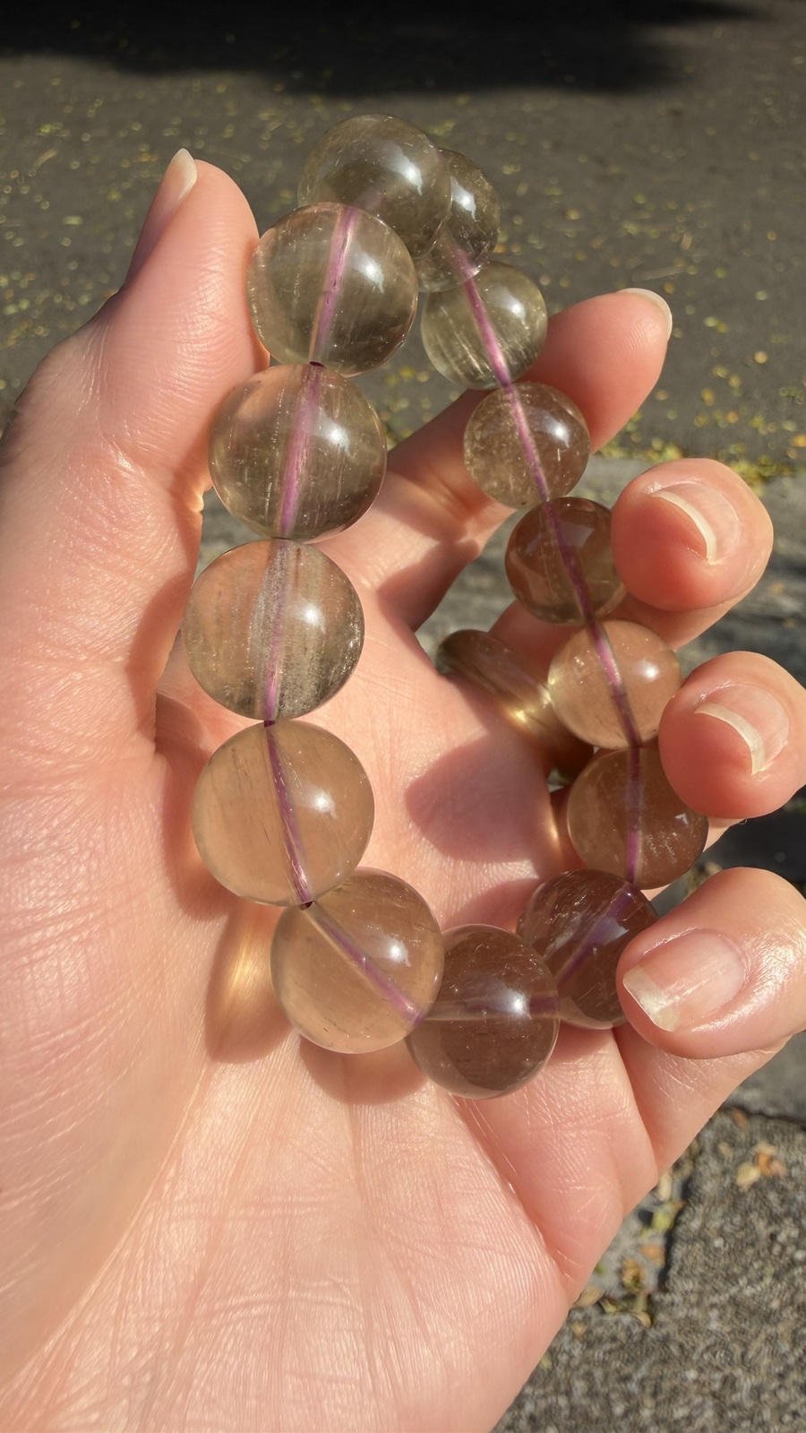 ✨這串是特殊款的煙紫拉絲流星雨利比亞圓珠~晶體裡面順髮拉絲氣泡非常漂亮.還有淡淡的貓眼感~