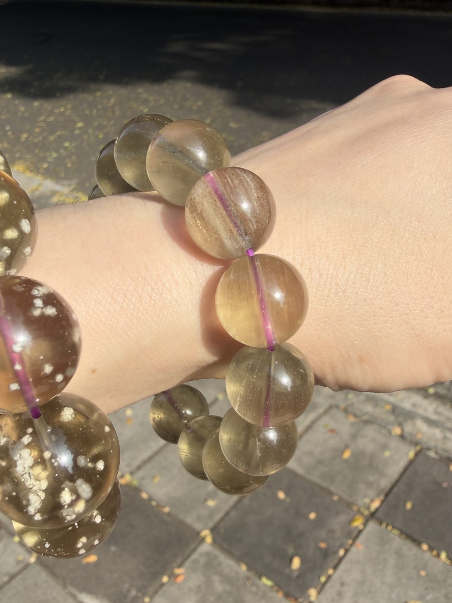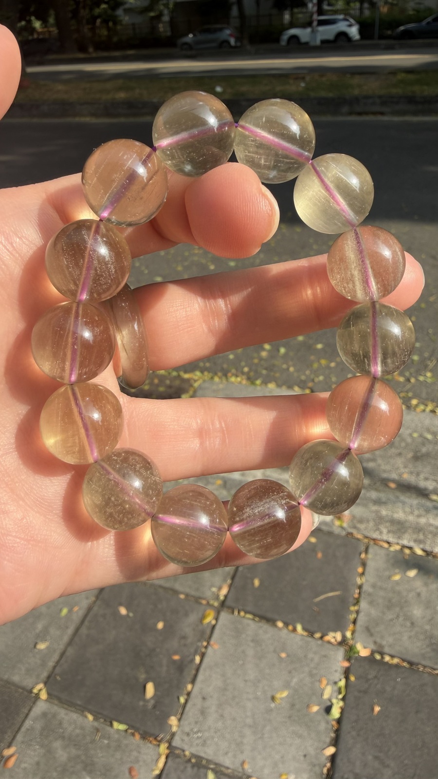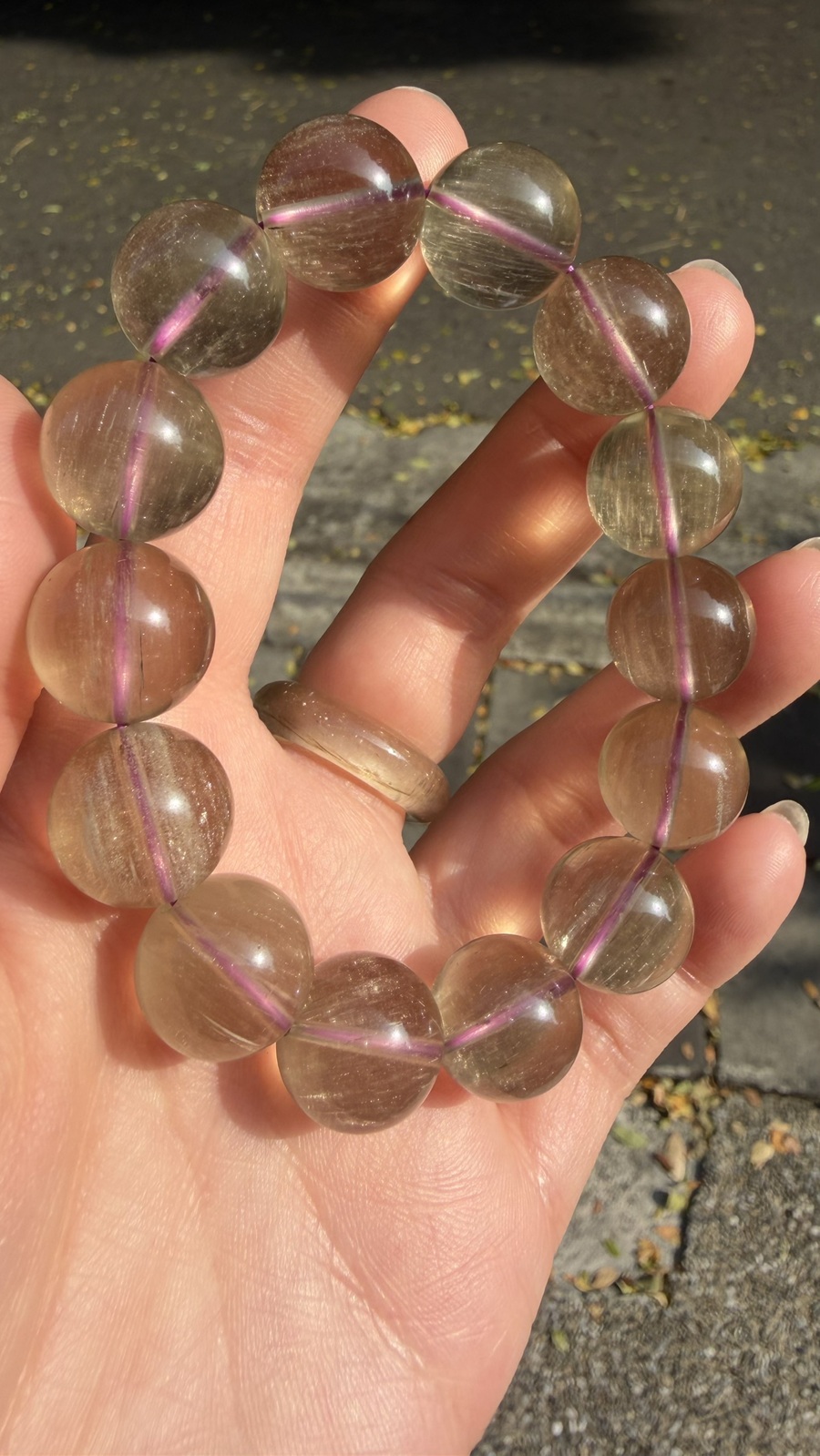 ✨這串是特殊款的煙紫拉絲流星雨利比亞圓珠~晶體裡面順髮拉絲氣泡非常漂亮.還有淡淡的貓眼感~
