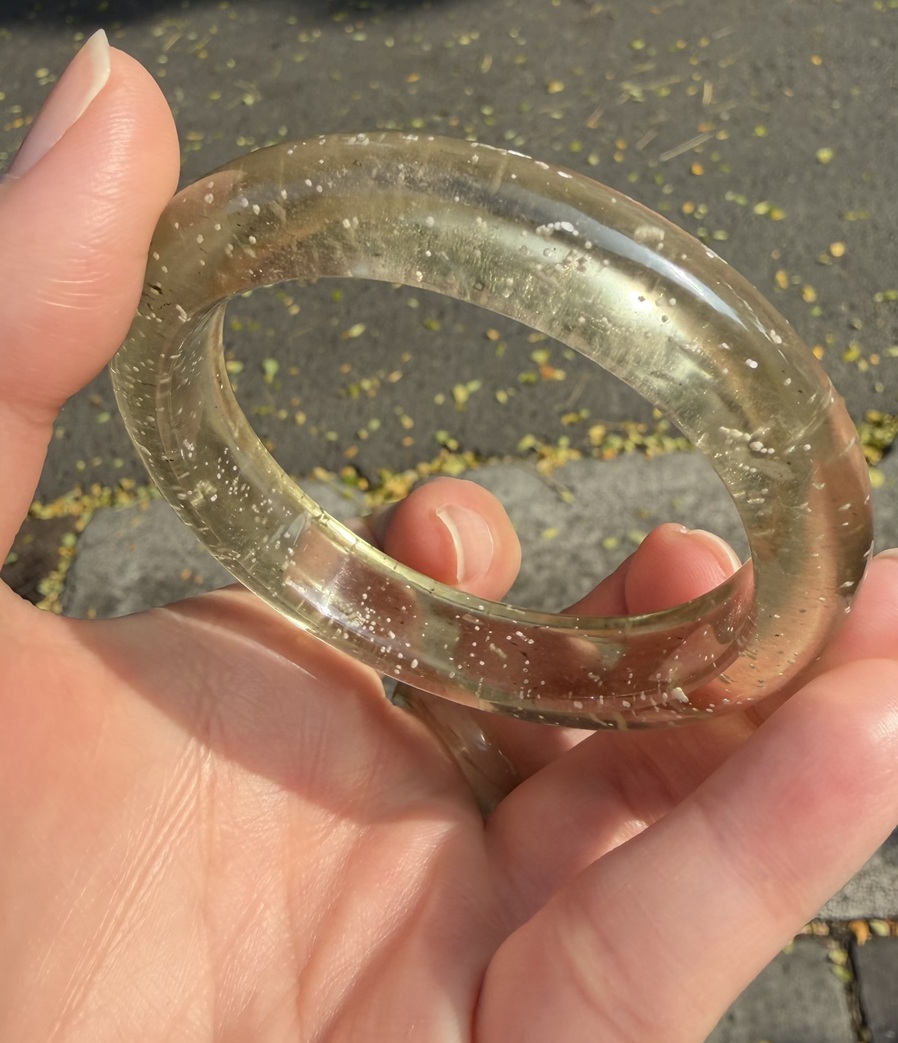 #316此款為:圈口55.5/條寬12.1mm/厚度9.0mm/的利比亞滿小雪花帶一點小氣泡的螢光感手鐲.
