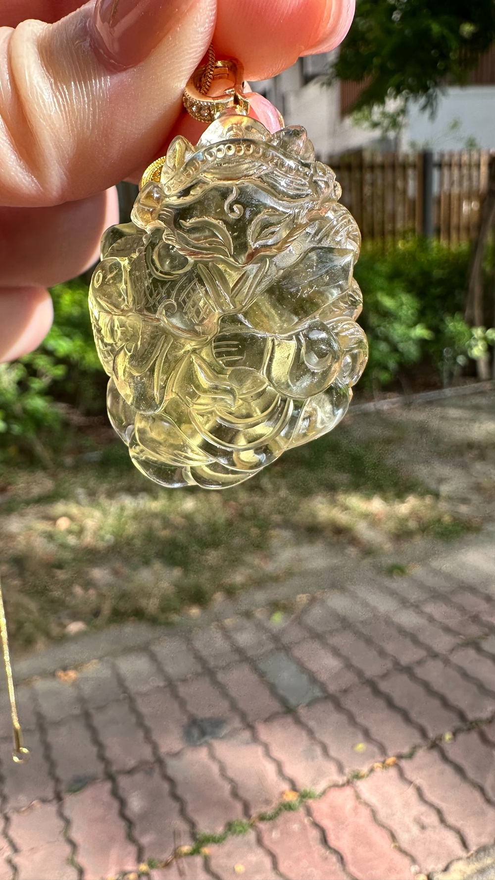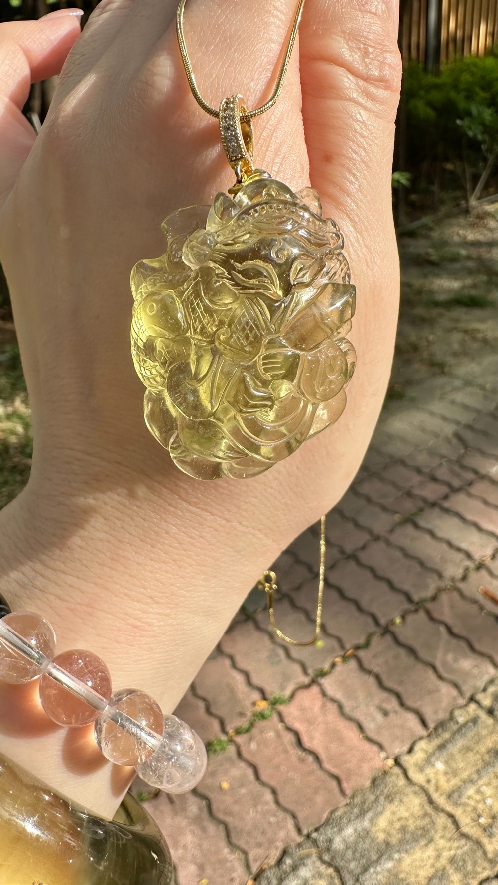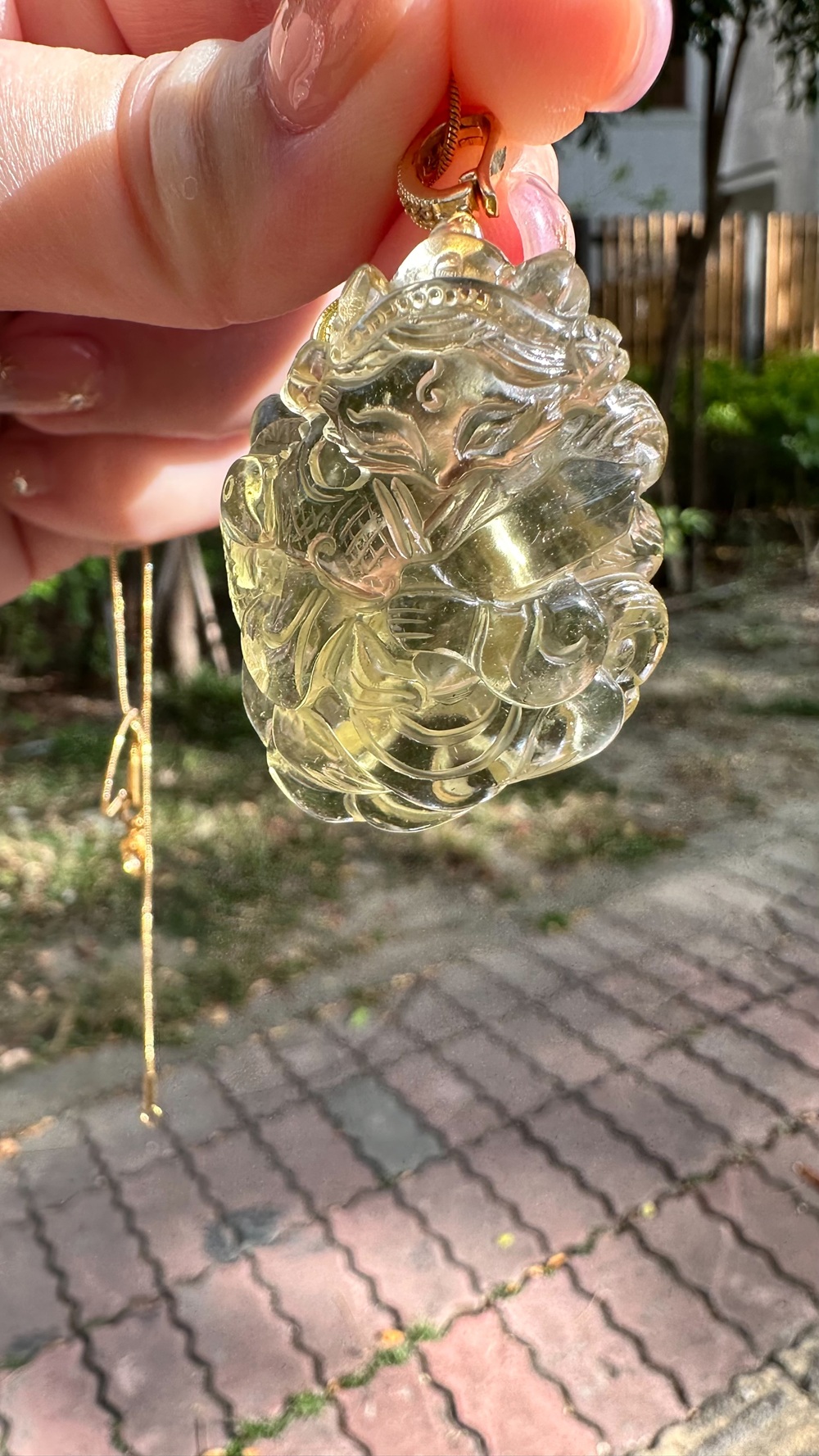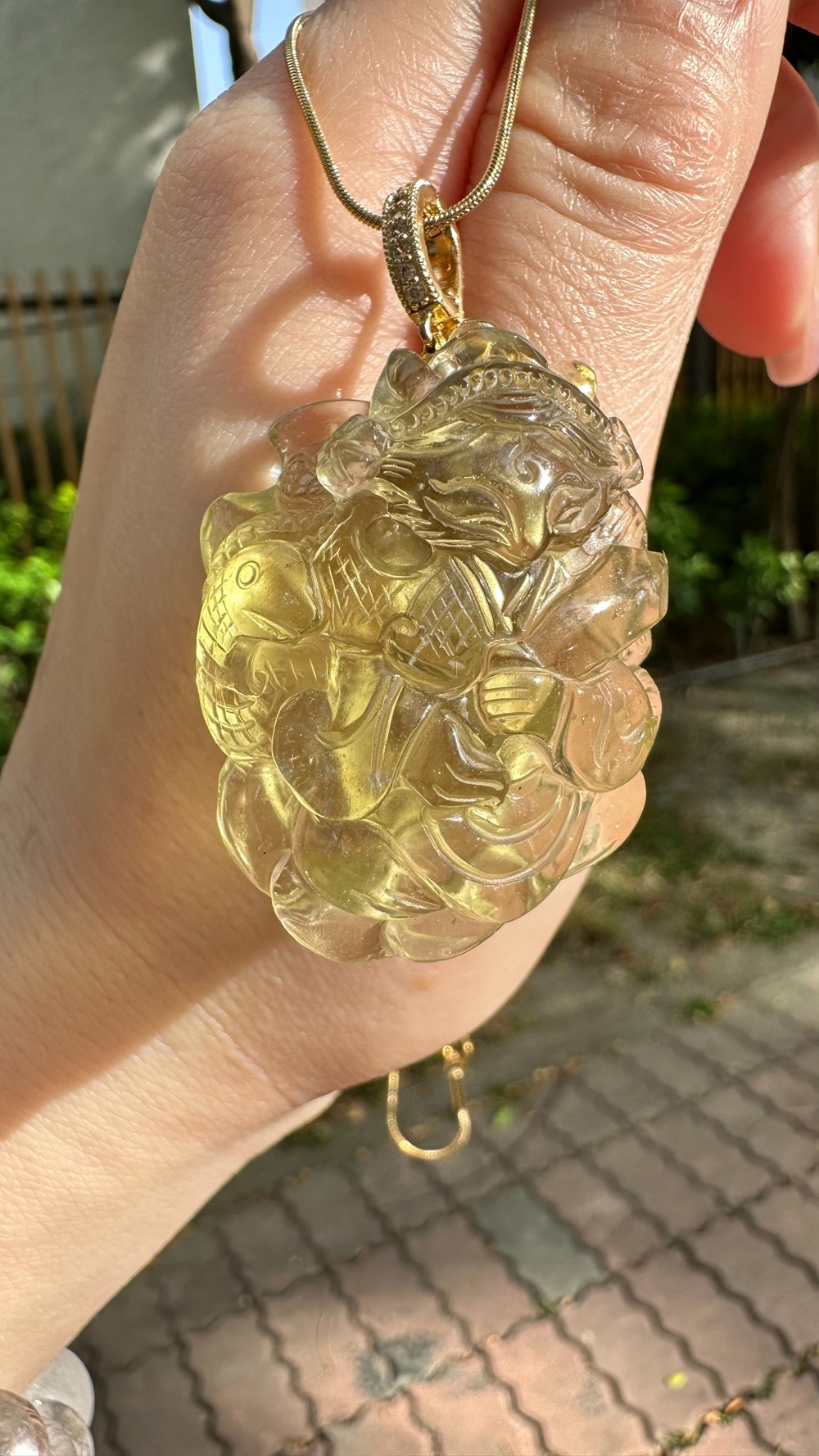 ✨✨在陽光下晶體濃郁黃透超淨體.非常螢光感.是品相非常漂亮且很厚實九尾狐吊墜.✨✨