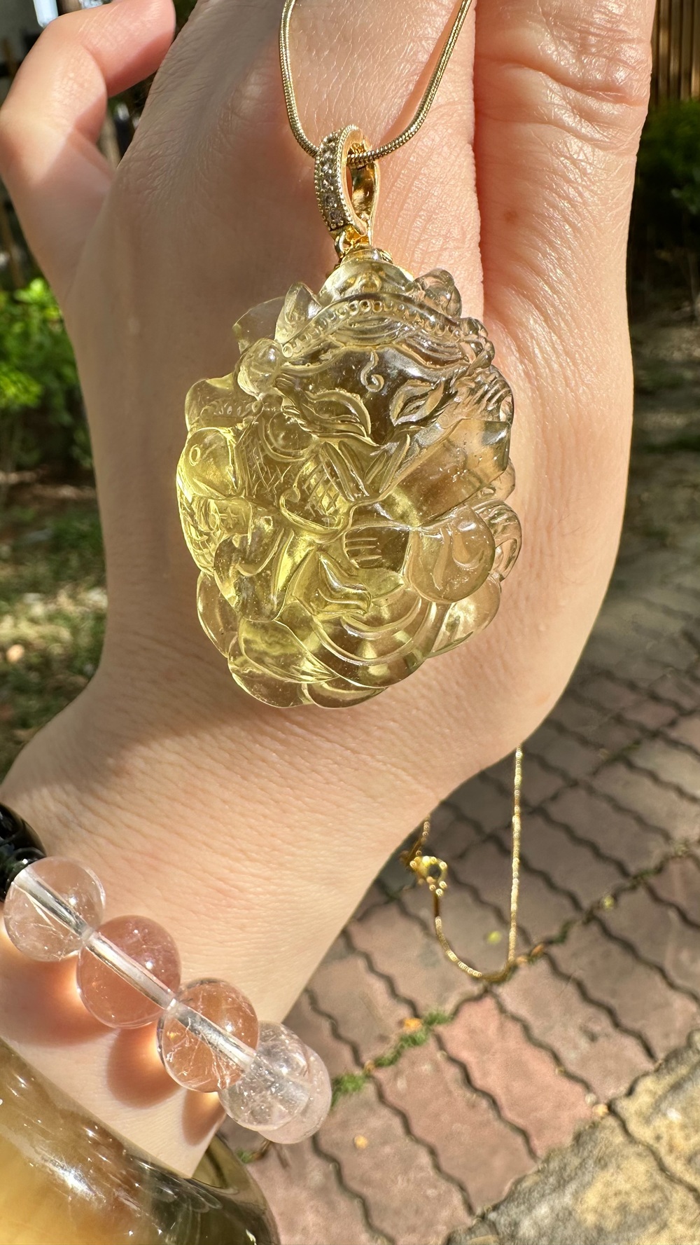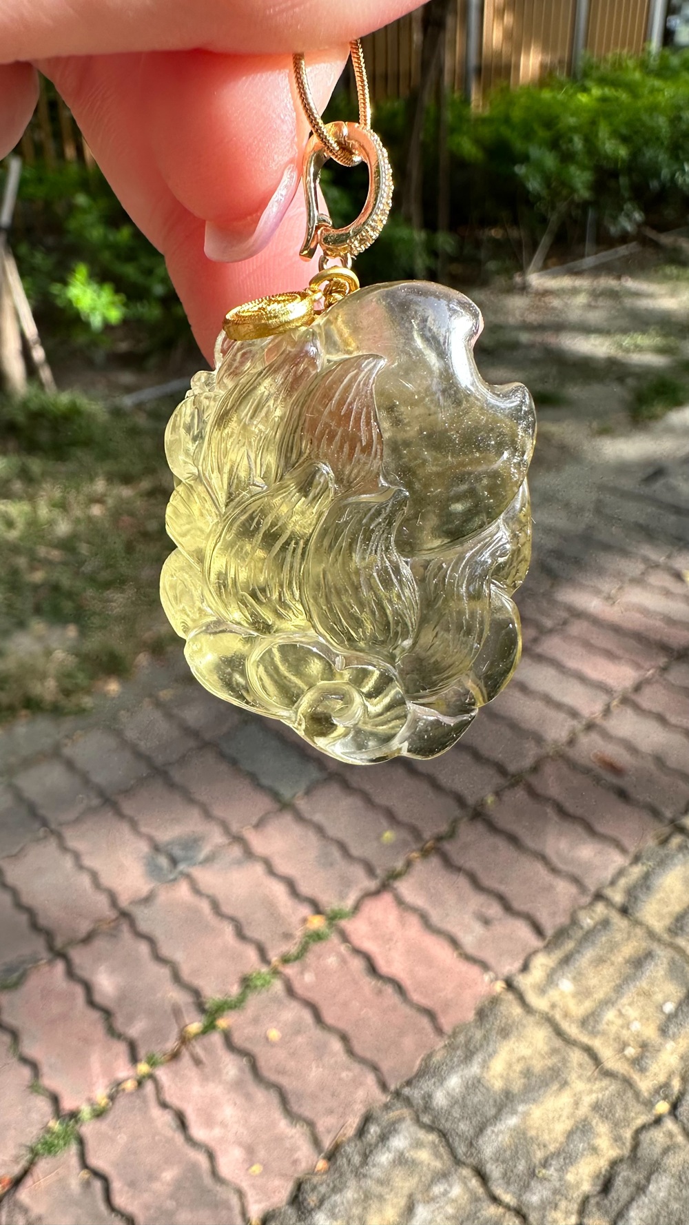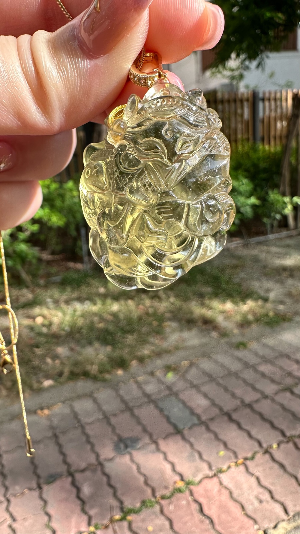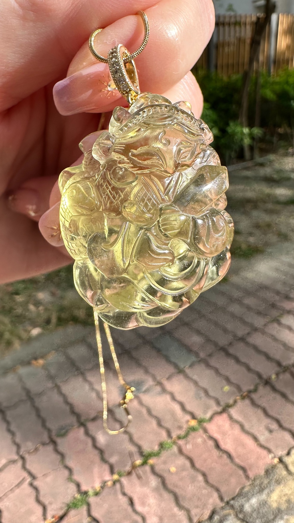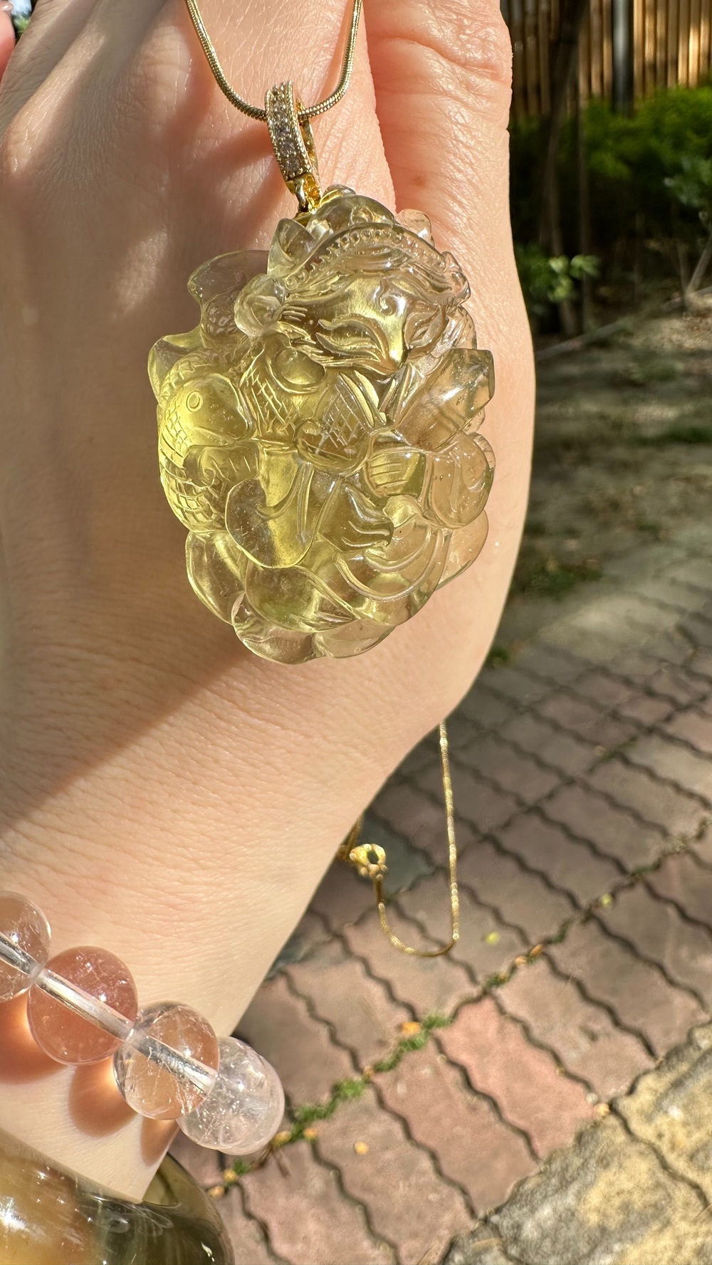 ✨✨在陽光下晶體濃郁黃透超淨體.非常螢光感.是品相非常漂亮且很厚實九尾狐吊墜.✨✨