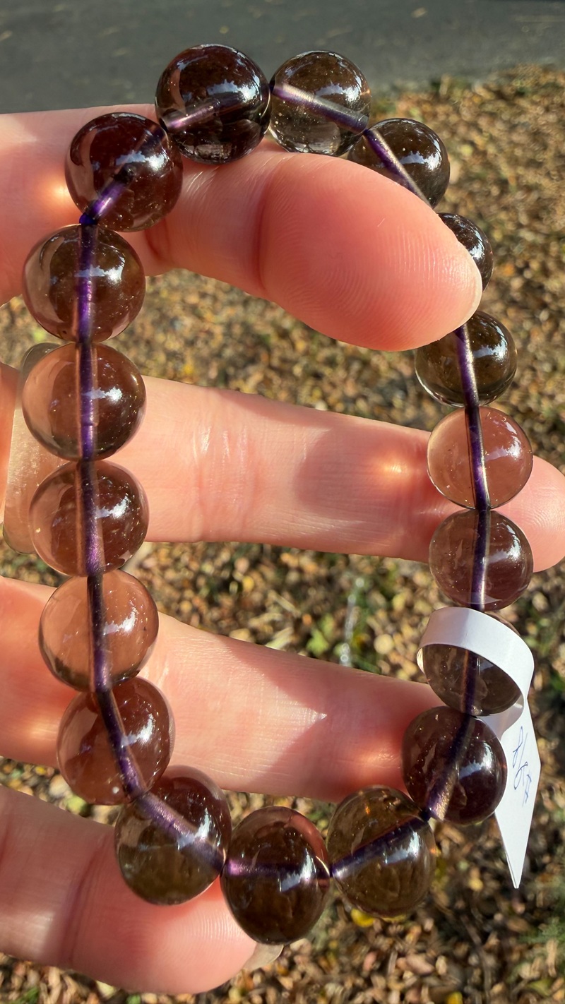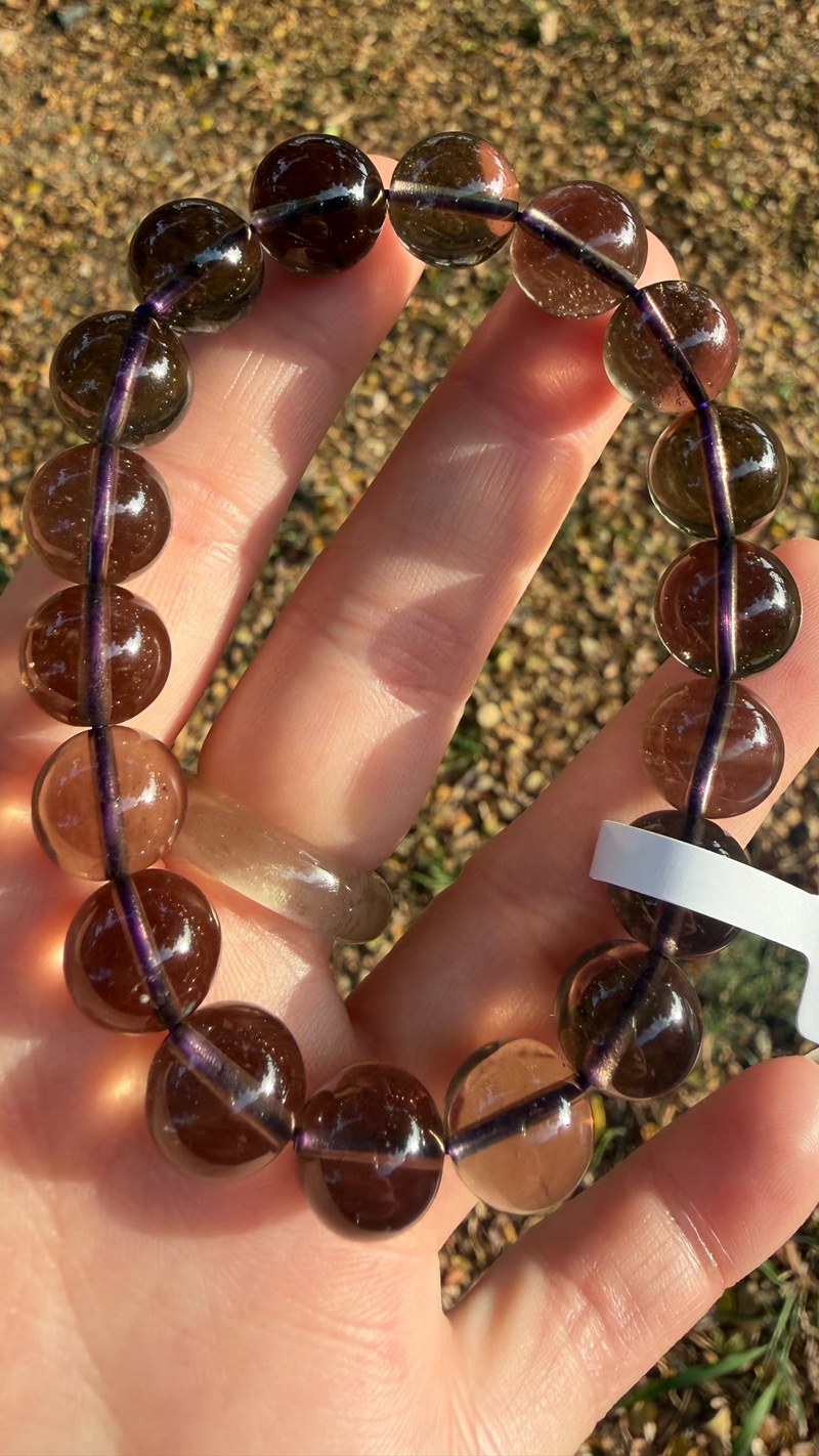 ✨這串有別於常見的煙紫利比亞晶體更更更加濃郁紫~在陽光下晶體乾淨帶點小氣泡而且螢光感也顯得溫潤晶瑩~整串非常潤感^^